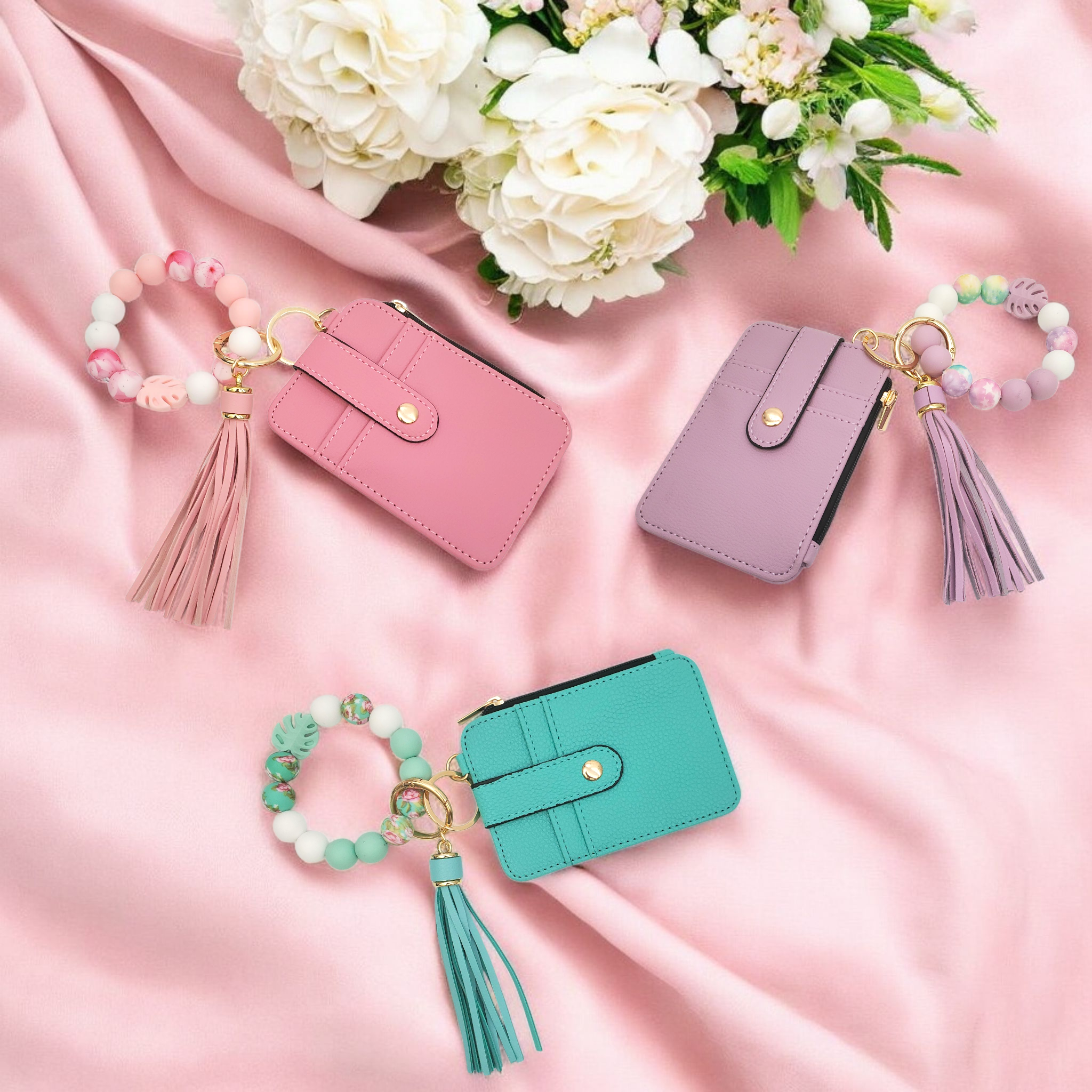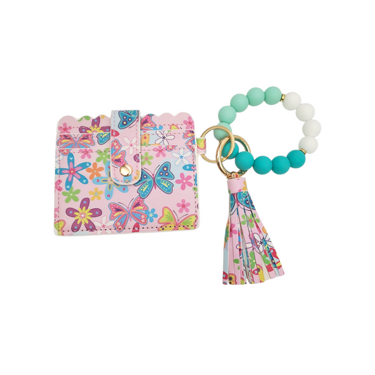 Beautifully Designed Mini Wallet with Silicone Beaded Bracelet Keychain (3 Options Available)