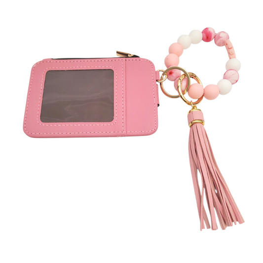 Plain Mini Wallet with Silicone Beaded Bracelet Keychain (3 Options Available)
