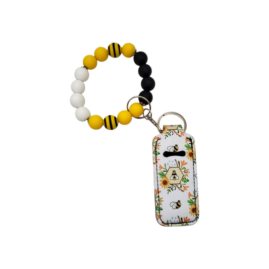 Honey Bee Silicone Beaded Bracelet Keychain Lip Gloss Holder ( 2 Options Available)