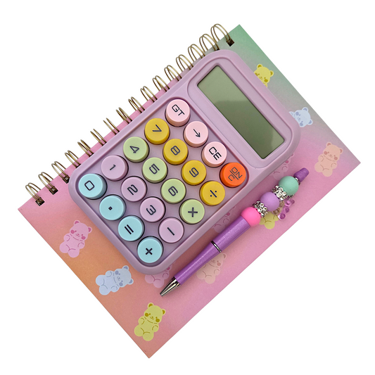 Bear Stationery Set: Spiral Journal, Beaded Pen, Lavender Calculator