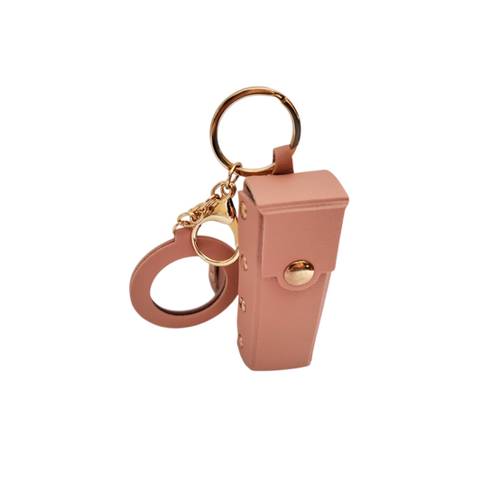 Lipstick Holder Keychain with Round Mirror & Charm