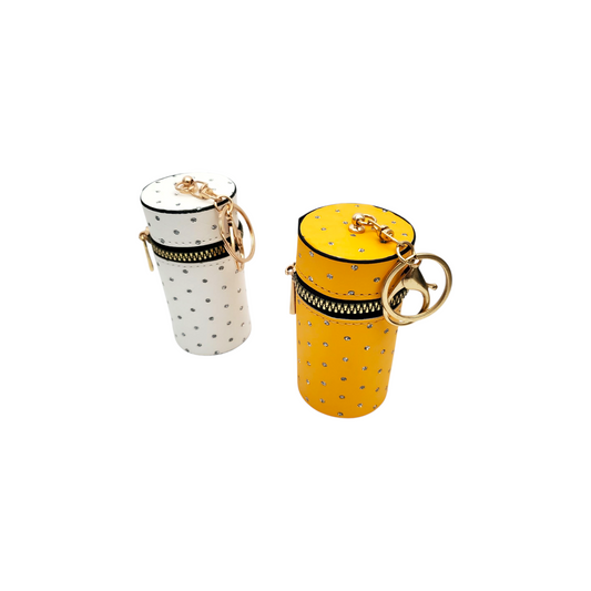 Diamond Accented Cylinder Mini Bag Keychain ( 2 Color Options Available )