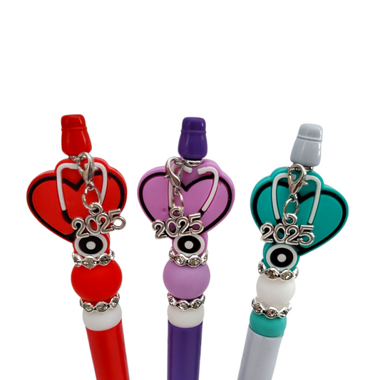 Nurse Badge Reel with Acrylic Beads and Charms, Retractable ID Holder, Multiple Colors Options
