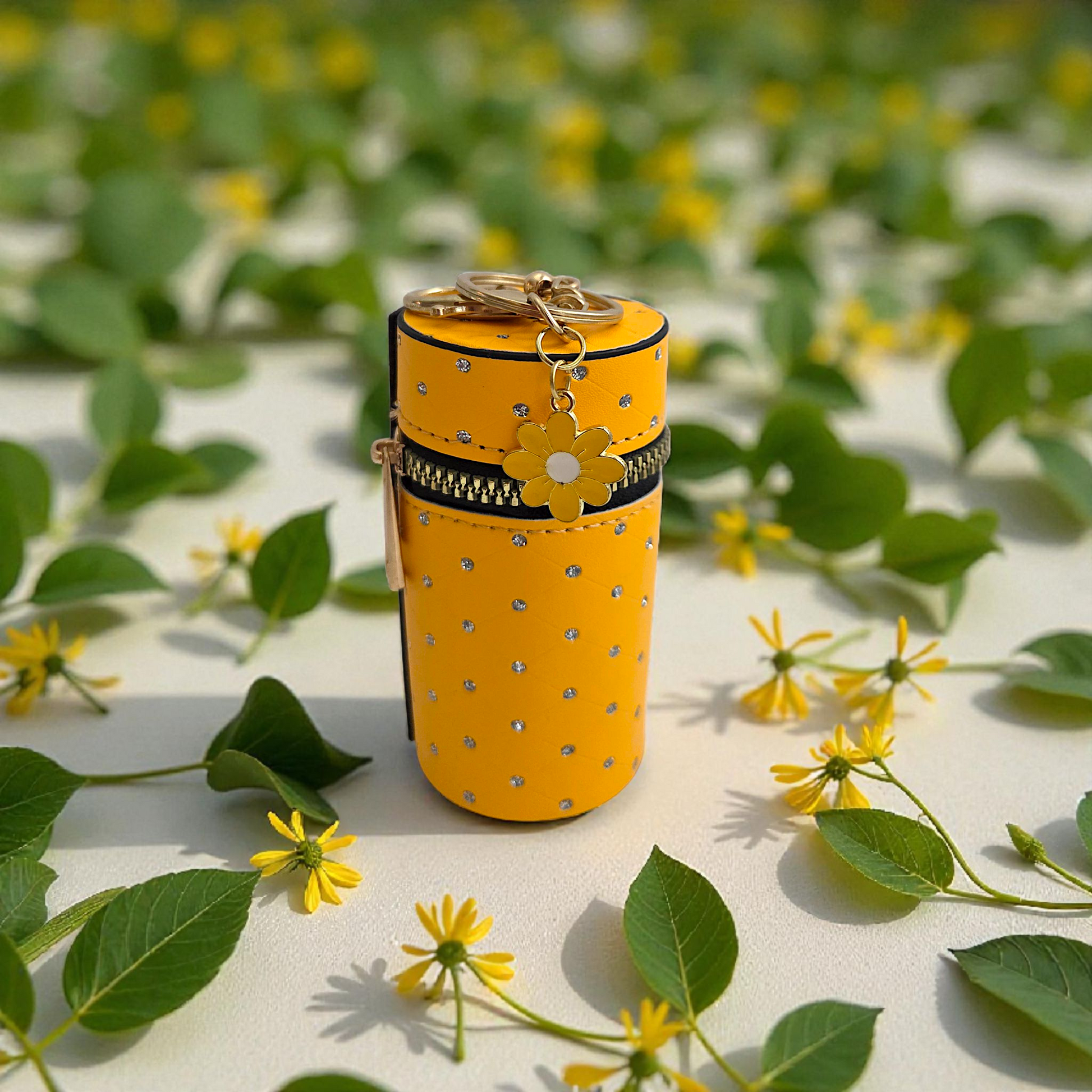 Add a touch of sparkle to your everyday essentials with our Diamond Accented Mini Cylinder Keychain Purse. Available in two color options, this chic keychain is perfect for holding make up and other small items. Small yet mighty, it's a functional and stylish addition to your bag collection.